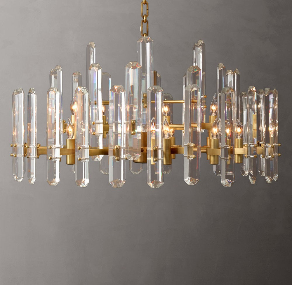 The Bonnington Round Chandelier combines solid brass craftsmanship with precision-cut K9 crystal prisms, delivering timeless elegance and brilliant illumination.